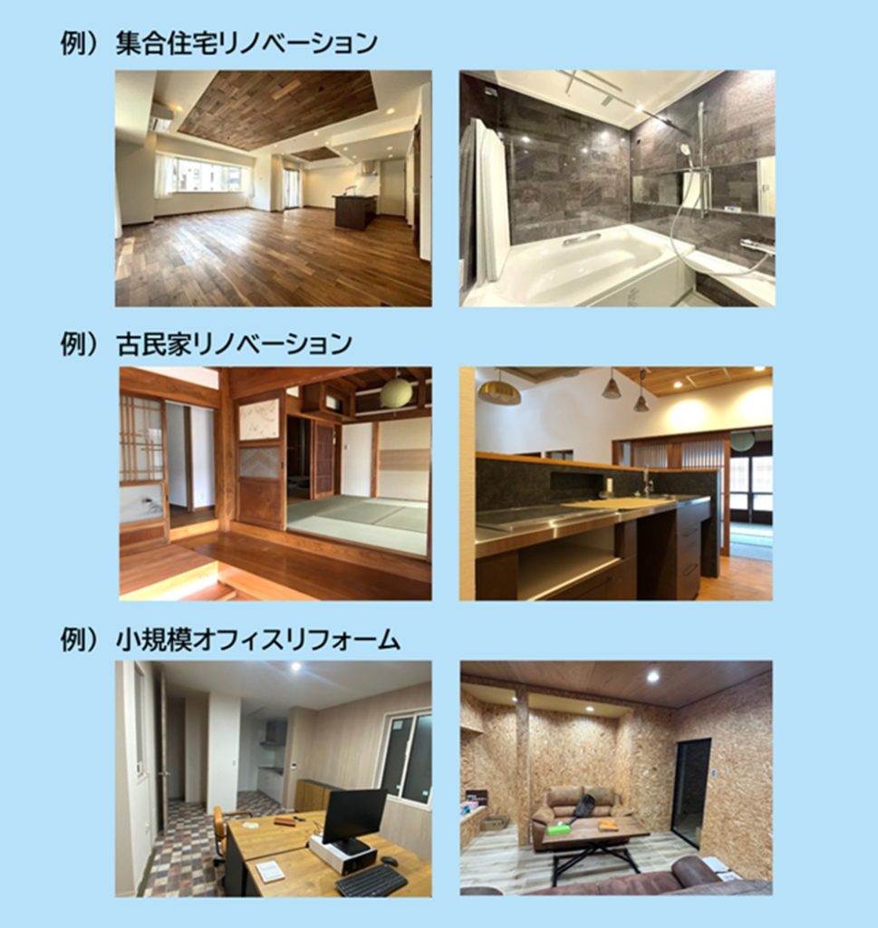 私たちは、対象物件の現場確認を受けて、リフォーム・リノベーションに必要な体制を整えサービスを提供します。私たちが行う主なサービスは以下の通りです。